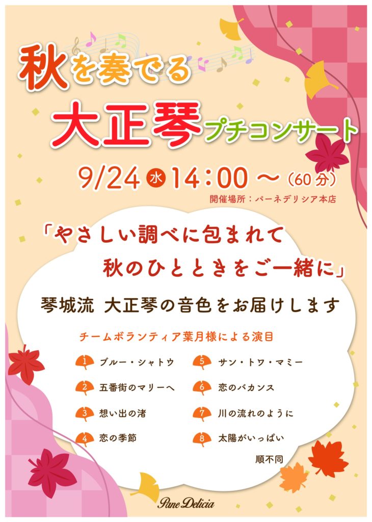 9/24(水)大正琴プチコンサート開催のお知らせ